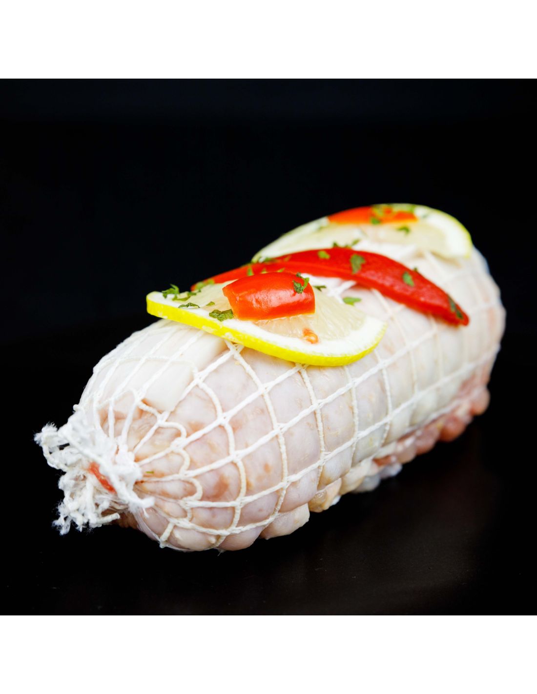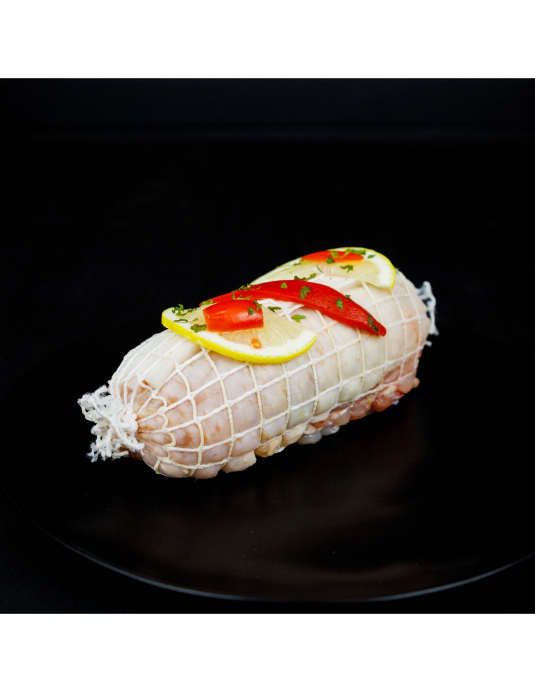 Así, lo rellenamos con jamón serrano, bacon y pimientos y lo introducimos en una red atándola a los lados para apretar la pieza. No hace falta que la retires hasta después de hornerarlo.