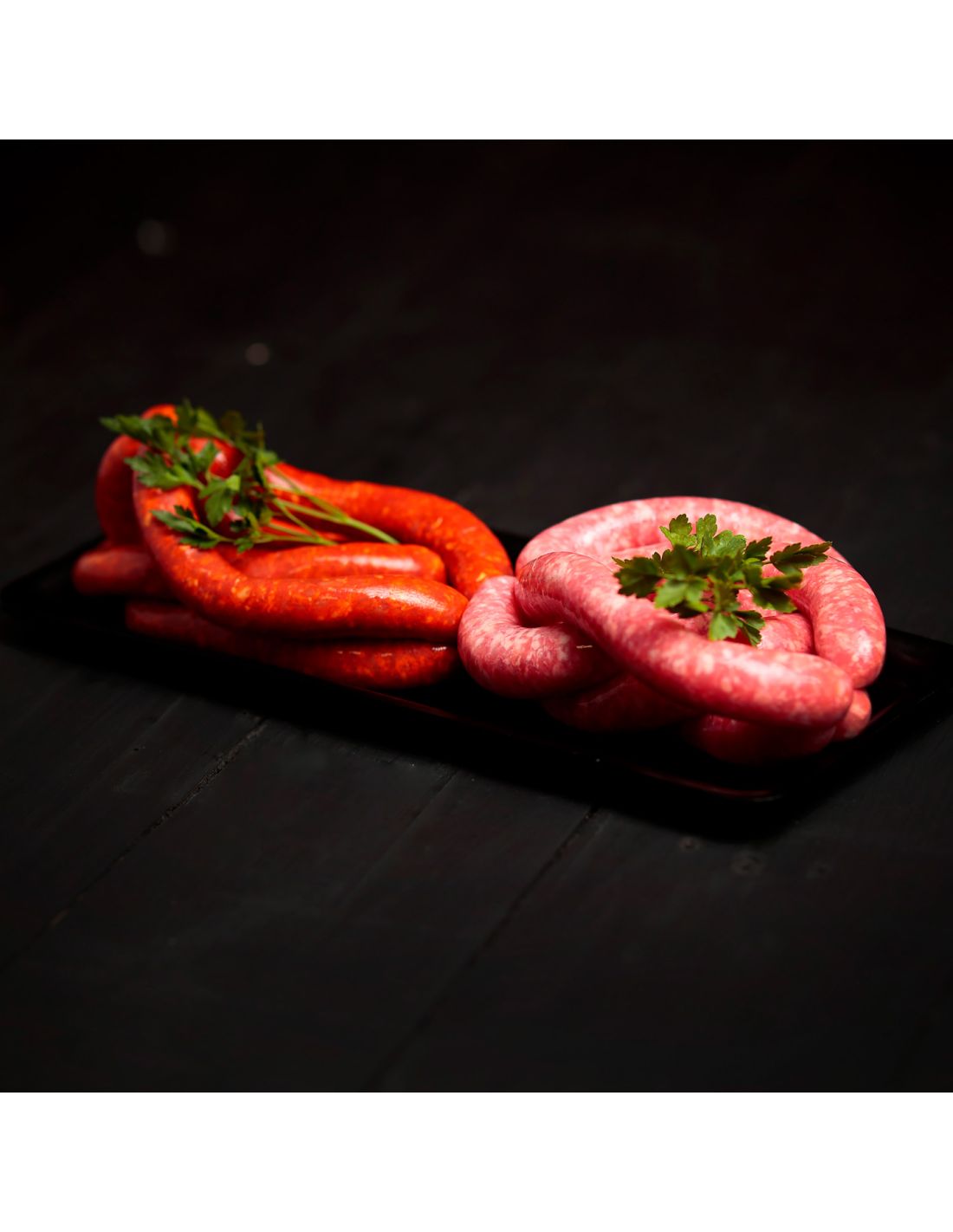 Dispones de dos variedades a elegir según tus gustos: las salchichas de cerdo blancas, suaves y tradicionales, y las rojas, con un toque de pimentón que aporta más intensidad. Ambas mantienen la jugosidad al cocinarlas y encajan tanto en menús diarios como en propuestas más especiales.