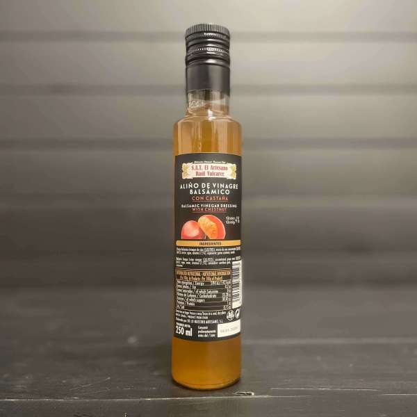 Este vinagre resulta ideal para aliñar platos templados, acompañar carnes al horno o dar un toque especial a guarniciones como verduras asadas o legumbres. El vinagre de castañas aporta profundidad sin robar protagonismo, haciendo que cada ingrediente brille con más intensidad. Es especialmente recomendable en platos de temporada, con productos de la tierra, o en recetas que buscan un toque cálido y redondo.
