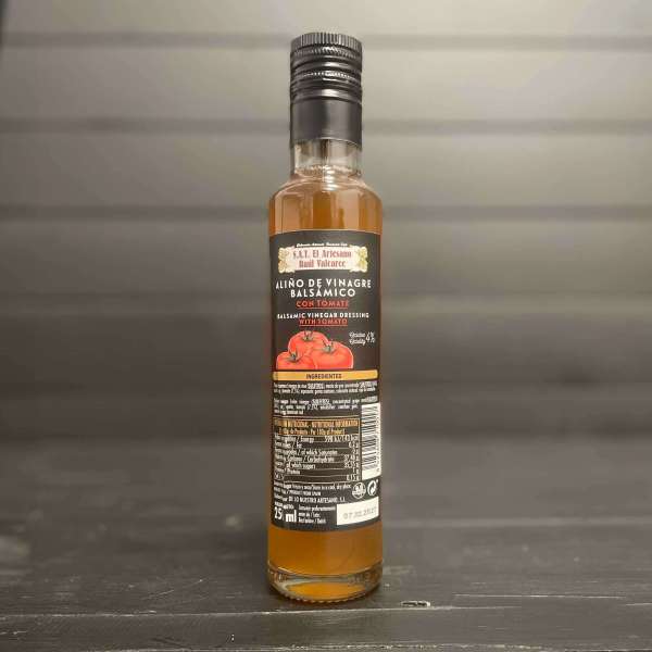 El vinagre de tomate es un condimento con carácter, elaborado a partir de tomates maduros y jugosos fermentados de forma natural. Su sabor es fresco, con una acidez suave y un fondo afrutado que recuerda al tomate en su punto justo de maduración. Este equilibrio lo convierte en un ingrediente ideal para realzar platos sin enmascararlos.